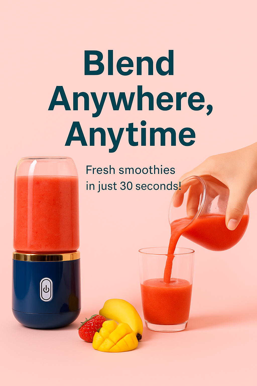 A full charge lasts up to 15 blends. It recharges easily via USB-C — just plug it into your laptop, car, or power bank